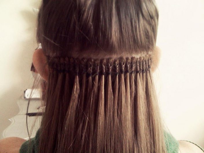 Wij zetten haarverlenging d.m.v. vlechtextensions. Vlechtextensions blijven vaak nog beter zitten dan waxextensions en zijn ook niet te zien. Door middel van een aanzetvlechtje word er een plukje haar aan je eigen haar vastgevlochten. Dit word met een elastiekje vastgezet. Op die manier worden er diverse rijen op je hoofd gevlochten. Je eigen haar valt over de extensions heen.